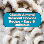 Almond Crescent Cookies are delicate, buttery treats with a subtle almond flavor and a tender, melt-in-your-mouth texture. Perfect for holiday gatherings or a simple afternoon snack, these cookies are dusted with confectioners’ sugar for an elegant finish.