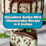 This decadent Andes Mint Cheesecake features a rich Oreo crust, creamy mint-infused filling studded with Andes chocolate pieces, and a luscious mint chocolate topping. Baked in a water bath for a smooth, creamy texture and finished with melted Andes mints for a glossy finish, this cheesecake is a perfect combination of chocolate and refreshing mint flavors, ideal for special occasions or indulgent treats.