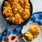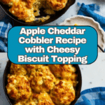 This Apple Cheddar Cobbler combines tender, cinnamon-kissed apple filling with savory sharp cheddar drop biscuits for a comforting and unique dessert. The apples are cooked gently on the stovetop with brown sugar, lemon juice, and butter before being topped with cheesy biscuit dollops and baked to golden perfection. A perfect balance of sweet and savory in every bite.