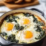Keywords: Baked Eggs Florentine, spinach and eggs, cheesy baked eggs, Italian breakfast, brunch recipe, spinach egg bake