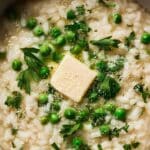 • If you prefer a richer risotto, stir in a splash of cream when adding the peas and Parmesan.