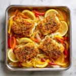 This Baked Tilapia in Lemon Garlic Sauce recipe offers a flavorful and healthy way to enjoy tilapia fillets. The fish is marinated in a zesty lemon garlic butter sauce, complemented by sautéed onions and peppers, then baked to perfection for a moist and tender finish. Perfect for a quick weeknight dinner served over rice with your favorite vegetables.