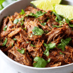 This Barbacoa recipe is a flavorful Chipotle copycat that features tender, slow-cooked beef infused with a smoky, spicy blend of chipotle chiles, garlic, and spices. Perfect for tacos, burritos, or bowls, this savory dish delivers rich Mexican-inspired flavors with minimal effort by using a slow cooker for a melt-in-your-mouth texture.