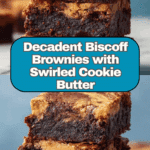 Decadent Biscoff Brownies featuring a rich blend of dark chocolate and creamy Biscoff cookie butter swirled into a fudgy batter, topped optionally with crunchy crushed Lotus Biscoff cookies. These indulgent brownies offer a luxurious twist on the classic treat, perfect for chocolate and cookie butter lovers alike.