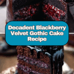 Blackberry Velvet Gothic Cake is a rich, moist chocolate cake layered with a luscious blackberry filling and topped with whipped cream. This dramatic dessert combines deep cocoa flavors with fresh fruit, perfect for special occasions or an indulgent treat.