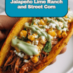 Keywords: braised brisket tacos, street corn salad, jalapeño lime ranch, Mexican tacos, Instant Pot brisket, chipotle tacos, creamy jalapeño sauce