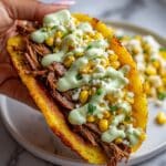Keywords: braised brisket tacos, street corn salad, jalapeño lime ranch, Mexican tacos, Instant Pot brisket, chipotle tacos, creamy jalapeño sauce