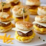 Breakfast sliders are a delicious and convenient way to start your day. These bite-sized sandwiches combine fluffy scrambled eggs, savory turkey sausage, melted cheese, and creamy country gravy, all nestled between golden crescent roll rounds. Perfect for a quick breakfast or brunch gathering.