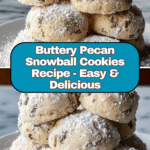 Buttery Pecan Snowball Cookies are delightful melt-in-your-mouth treats perfect for any occasion. These classic cookies combine rich butter, crunchy pecans, and a generous coating of powdered sugar for a snowy finish that’s as beautiful as it is delicious.