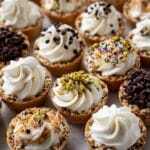 Delightful mini cannoli bites featuring a crispy pie crust cup filled with a creamy and sweet ricotta mascarpone mixture, enhanced with mini chocolate chips. These bite-sized treats are perfect for parties, dessert tables, or a special indulgence with minimal effort.