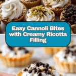 Keywords: Cannoli bites, mini cannoli, ricotta dessert, easy Italian dessert, pie crust dessert, party appetizers