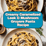 Caramelized Leek and Mushroom Gruyere Pasta is a gourmet Italian-inspired dish featuring tender fettuccine or linguine tossed in a creamy, cheesy sauce made from caramelized leeks, savory cremini mushrooms, garlic, and nutty Gruyere cheese. This recipe combines the sweet, caramelized flavor of leeks with earthy mushrooms and a luscious Gruyere cheese sauce to create an indulgent and comforting meal perfect for family dinners or entertaining guests.