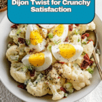 A fresh and versatile cauliflower salad featuring roasted or steamed cauliflower florets combined with crunchy celery, green onions, hard-boiled eggs, and tangy dill pickles, all tossed in a creamy Dijon mustard mayonnaise dressing. Perfect as a light lunch or a flavorful side dish.