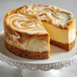 Keywords: cheesecake, pumpkin swirl, fall dessert, holiday dessert, pumpkin spice, creamy cheesecake, marbled cheesecake, baked cheesecake