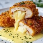 Chicken Cordon Bleu is a classic dish featuring tender chicken breasts stuffed with savory turkey and Swiss cheese, breaded to golden perfection, then pan-seared and baked. Finished with a creamy, rich Swiss cheese sauce, this recipe is a comforting gourmet meal perfect for family dinners or special occasions.