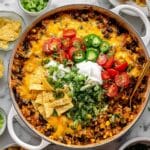 This Chicken Taco Casserole is a flavorful and hearty dish combining tender chicken, black beans, diced tomatoes, and taco seasoning baked with cheddar cheese and fresh vegetables. It’s perfect for a comforting weeknight meal, served with avocado, jalapeño slices, sour cream, and crunchy tortilla chips for added texture and taste.