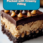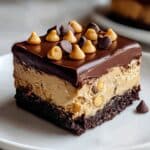 - Step 6: Sprinkle the top with mini chocolate chips and chopped peanut butter cups for extra flavor and crunch. Slice into squares and serve chilled.