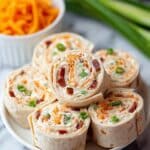 - Step 5: Remove rolls from the fridge, unwrap, and slice into ½-inch thick pinwheels using a sharp knife. Arrange on a platter and garnish with extra green onions or fresh herbs if desired.