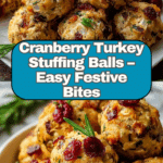 Keywords: Cranberry stuffing balls, turkey stuffing balls, holiday appetizers, Thanksgiving recipes, Christmas side dishes, bite-sized stuffing, savory cranberry turkey