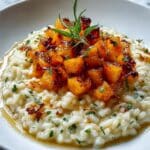 This Roasted Butternut Squash Risotto is a creamy, comforting dish that combines the natural sweetness of roasted butternut squash with the rich, velvety texture of classic Italian risotto. Enhanced with aromatic shallots, garlic, white wine, and Parmesan cheese, it makes a perfect vegetarian main or side dish that is both satisfying and elegant.