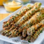 It’s best to use fresh asparagus for the crispiest results. If you use frozen, make sure to thaw and pat dry thoroughly before coating to avoid soggy fries.