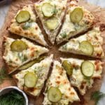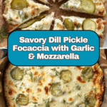 This Dill Pickle Focaccia Bread is a flavorful twist on classic focaccia, featuring a garlic-infused dough topped with tangy dill pickle slices and melted mozzarella cheese. Perfect as a snack or appetizer, this golden, dimpled bread is garnished with fresh dill for an extra burst of herby freshness.
