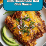 These easy chicken enchiladas with red sauce are a comforting and flavorful meal perfect for any night of the week. Tender shredded chicken is wrapped in soft corn tortillas, smothered in a homemade red enchilada sauce, and topped with melted cheese for a delicious, crowd-pleasing dish.