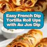 French Dip Tortilla Roll Ups combine tender roast beef and melted cheese wrapped in warm flour tortillas, baked to golden perfection and served with a savory homemade au jus for dipping. This easy-to-make American main dish is perfect for a satisfying lunch or dinner, bringing together comforting flavors in every bite.