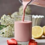This strawberry lemonade is best enjoyed fresh. If you need to store it, keep it in a sealed container in the refrigerator for up to 24 hours. Stir or blend gently before serving again, as ingredients may separate. Avoid freezing to maintain the creamy texture.