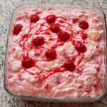 - Transfer and smooth: Pour the cherry fluff mixture into the prepared casserole dish and smooth the top with a spatula. Don’t worry if cherry swirls remain visible — this adds to the charm.