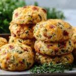 These Breakfast Protein Biscuits are a fluffy, savory treat packed with Greek yogurt, eggs, ham, cheese, and spinach, making them a delicious high-protein start to your day. Perfectly golden and lightly spiced, they are easy to make and great for meal prep or quick breakfasts.