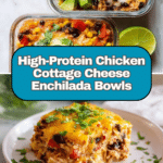 High-Protein Chicken Cottage Cheese Enchilada Bowls are a nutritious and flavorful meal combining creamy cottage cheese blended with enchilada sauce, shredded rotisserie chicken, and a mix of fresh vegetables and beans. This quick and easy recipe uses simple blending and microwaving techniques to create a comforting, protein-packed dish perfect for lunch or dinner.