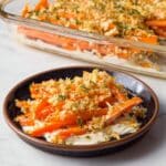 - Top and Bake: Sprinkle the buttery Panko topping evenly over the carrots. Bake in the preheated oven for 15 minutes, until the topping is golden brown and crispy.