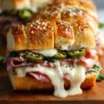 Keywords: hot roll sandwiches, baked sandwiches, party food, easy sandwiches, melty cheese sandwich, sub sandwich recipe, garlic butter sandwich