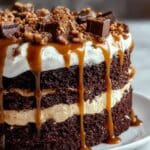 This Irresistible Chocolate Caramel Toffee Crunch Cake is a luscious layered dessert that combines moist chocolate cake, rich caramel sauce, fluffy whipped cream, and crunchy toffee bits. Perfect for chocolate lovers looking for a decadent treat with a satisfying crunch.