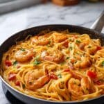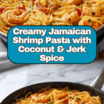 This Jamaican Shrimp Pasta is a vibrant and flavorful dish that combines tender shrimp seasoned with spicy Jamaican jerk seasoning and sautéed vegetables in a creamy coconut milk sauce. Tossed with al dente fettuccine or linguine, it offers a perfect balance of spice, creaminess, and freshness with lime and cilantro garnishes.