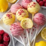 Keywords: lemon cake pops, raspberry cake pops, party desserts, cake pops recipe, lemon raspberry treats