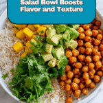 Keywords: Mango salad, chickpea salad, vegan salad, baked tofu, crispy chickpeas, healthy lunch, plant-based