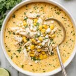 Keywords: Mexican street corn soup, elote soup, chicken corn soup, fire-roasted corn soup, creamy Mexican soup