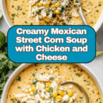 This Mexican Street Corn Soup is a creamy, flavorful dish inspired by the popular street corn Mexican snack. It features fire-roasted corn, tender shredded chicken, and a perfect blend of spices simmered in a savory chicken broth, then finished with sour cream, cheese, lime, and fresh cilantro for a rich and comforting bowl of soup bursting with vibrant flavors.