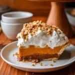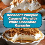 Milk Bar Hilly’s Pumpkin Caramel Pie is an indulgent fall dessert combining a rich pumpkin white chocolate ganache, salted caramel layer, and a flaky, buttery pie crust topped with a cinnamon-cardamom oat streusel and fresh whipped cream. This pie features complex flavors and textures with roasted pumpkin puree, creamy white chocolate, house-made salted caramel, and a tender pâte brisée crust, perfect for a festive occasion or holiday treat.