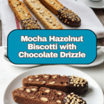 Delight in these Mocha Chip Hazelnut Biscotti, featuring a perfect balance of rich cocoa, bold coffee, crunchy hazelnuts, and melty chocolate chips. These twice-baked Italian cookies are crisp, flavorful, and beautifully glazed with semi-sweet chocolate, making them an ideal treat for coffee lovers and chocolate enthusiasts alike.