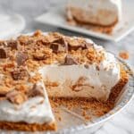 Keywords: Butterfinger pie, no-bake pie, peanut butter dessert, easy dessert, candy pie, graham cracker crust pie, no-bake peanut butter pie