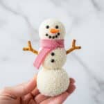 Delightfully cute and easy-to-make No-Bake Snowman Truffles made with creamy dairy-free white chocolate, vegan cream cheese, and crunchy cookie crumbs. These adorable snowman-shaped treats are perfect for winter celebrations or holiday parties, featuring a smooth white chocolate coating, fun facial decorations, and a sweet candy scarf.