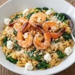 This One Pan Parmesan Orzo with Shrimp is a creamy, flavorful Mediterranean-inspired dish combining tender orzo pasta, succulent seared shrimp, fresh spinach, and a blend of aromatic spices like za’atar and oregano. Finished with tangy feta, grated Parmesan, and a squeeze of lemon, it’s a comforting, easy-to-make skillet meal perfect for weeknights or casual dinners.