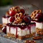Store these cheesecake bars in an airtight container in the refrigerator for up to three days. For best texture and flavor, serve chilled. To reheat slightly, let the bars sit at room temperature for 10–15 minutes before serving, but avoid microwaving as it can affect the texture.