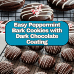 Delight in these festive Peppermint Bark Cookies, featuring a rich cocoa cookie base dipped in smooth dark chocolate, drizzled with sweet white chocolate, and topped with crushed peppermint candies. Perfect for holiday celebrations, these cookies combine chocolatey decadence with a refreshing minty crunch.