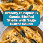These Pumpkin & Gouda Stuffed Shells are a cozy, flavorful twist on a classic comfort dish. Filled with creamy pumpkin and smoked gouda, then topped with a rich brown butter and sage Alfredo sauce, they make a perfect fall meal to impress family and friends.