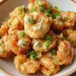 - Toss and Serve: In a large bowl, combine the crispy fried shrimp, candied walnuts, and prepared sauce. Toss everything thoroughly to coat evenly. Garnish with finely chopped green onions and serve immediately for best texture and flavor.