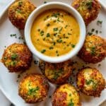 These crispy Reuben Balls with a spicy Thousand Island dipping sauce are a delicious appetizer combining classic Reuben sandwich flavors into bite-sized, fried delights. Featuring corned beef, sauerkraut, Swiss cheese, and cream cheese, these flavorful balls are coated and fried to golden perfection and served with a tangy, spicy dipping sauce that adds zest to each bite.